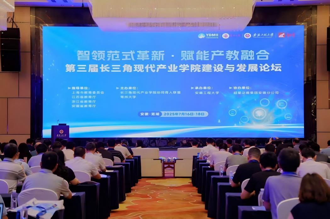 2025年7月16-18日,由长三角现代产业学院协同育人联盟、常州大学主办,安徽工程大学承办的第三届长三角现代产业学院建设与发展论坛在安徽芜湖举行,来自全国100余所高校及企事业单位代表300余人参加会议,本次论坛的主题为“智领范式革新·赋能产教融合”。安徽省委教育工委委员、省教育厅副厅长刘业勋,芜湖市政协党组副书记、副主席陆雷,安徽工程大学党委副书记、校长黄友锐到会并致辞。beat365官网教务管理部负责人带队参加了论坛。