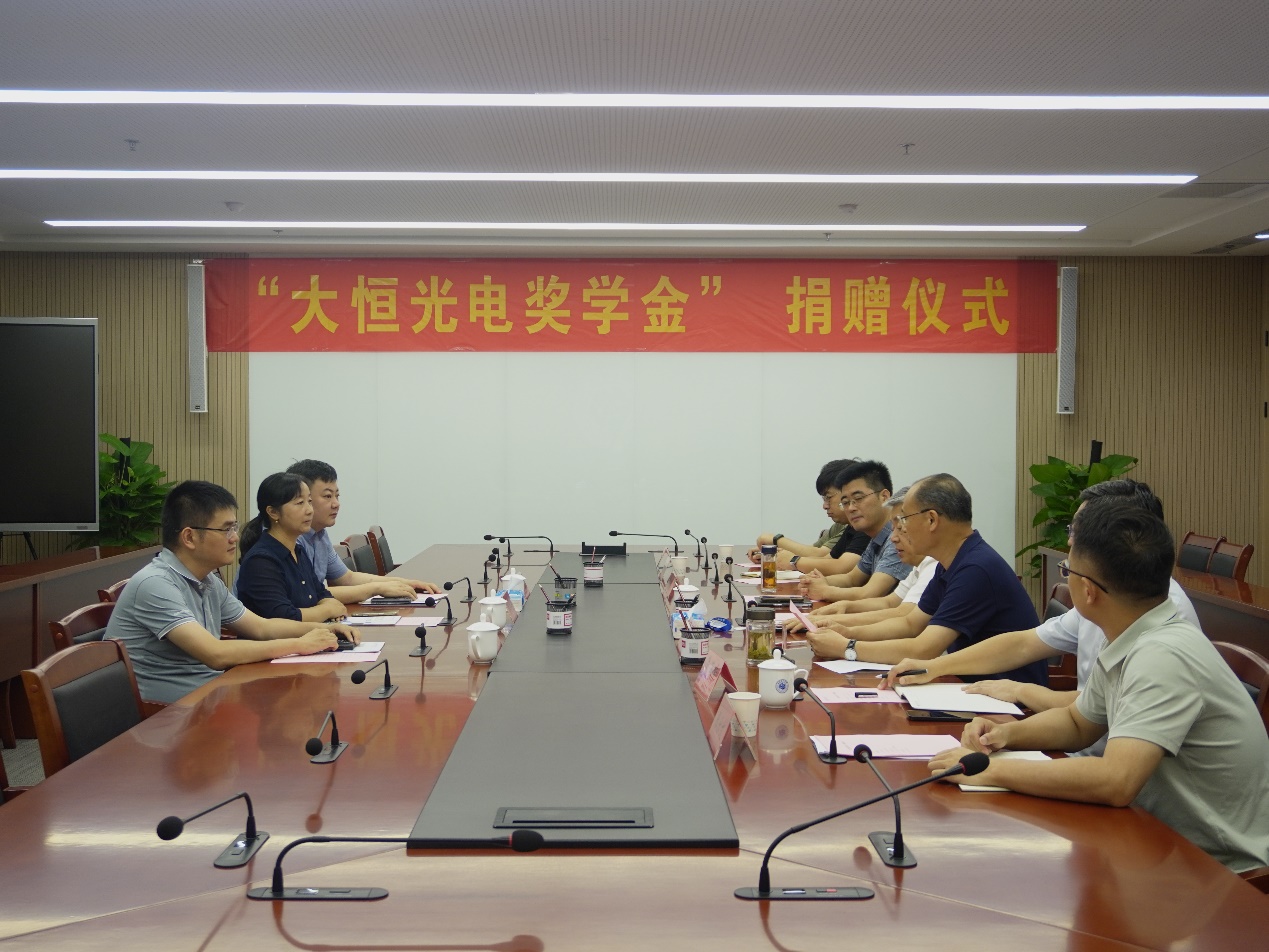 2025年8月25日,“大恒光电奖学金”捐赠仪式在beat365官网行政综合楼第一会议室举行。beat365唯一官方网站党委副书记、院长吴玉程,beat365唯一官方网站筹备组副主任吴明在,大恒光电研究所(以下简称“大恒光电”)总经理李秀芳参加捐赠仪式,活动由beat365唯一官方网站党委副书记、副院长李先强主持。
