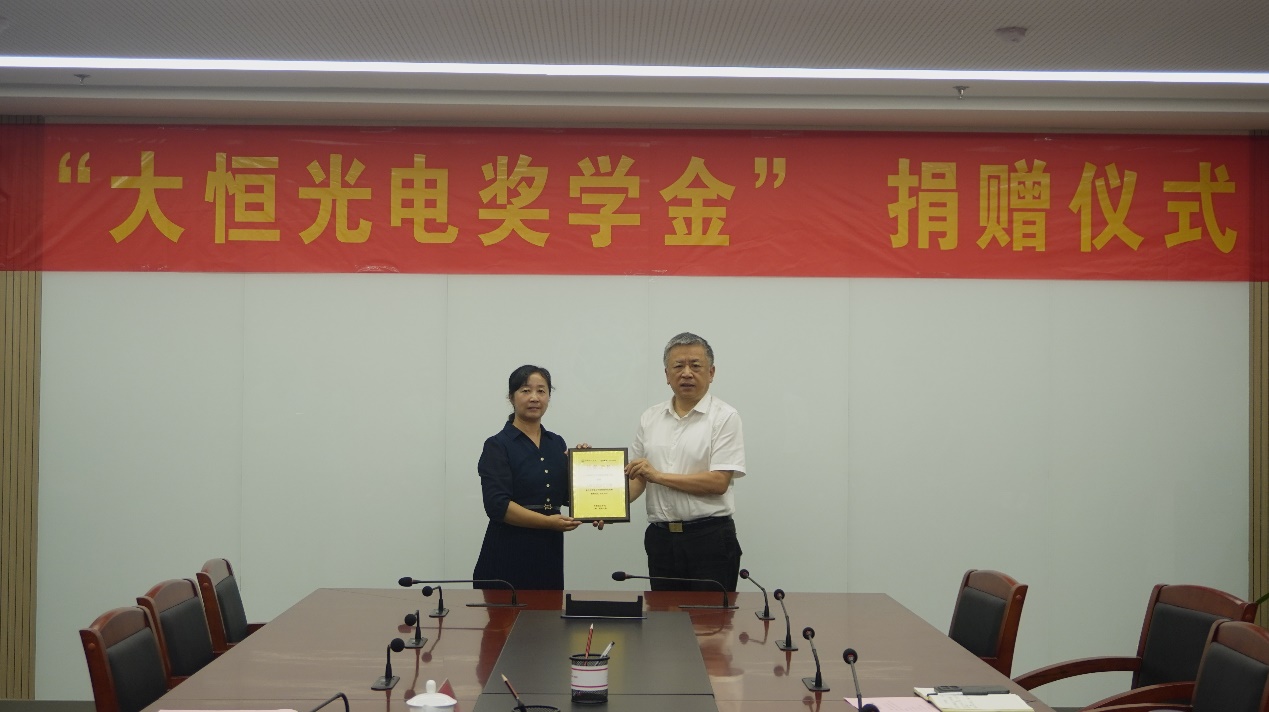 大恒光电捐赠人民币20万元,在beat365唯一官方网站设立“大恒光电奖学金”。吴玉程代表学校向大恒光电颁发了捐赠证书。