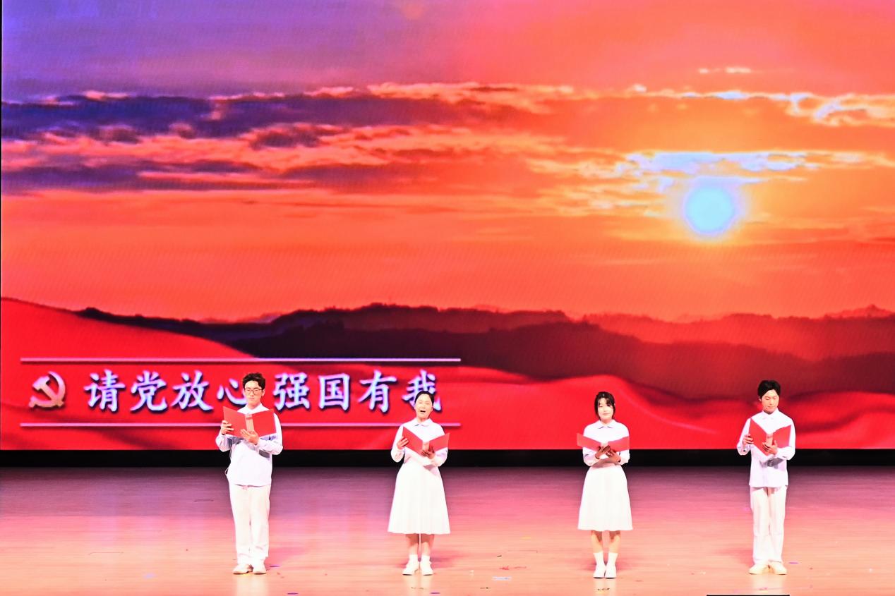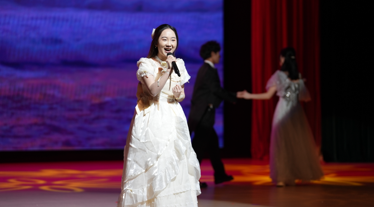 全体演员与现场师生的大合唱《歌唱祖国》将晚会推向高潮,熟悉的旋律响彻全场,真挚的情感浸润人心,晚会随之圆满落幕。