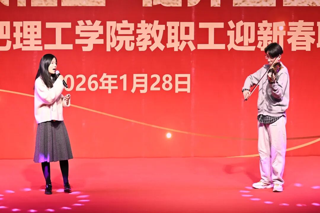 乐器弹唱《La Vie En Rose》《Love yourself》将器乐与歌声巧妙融合,带来一场极致的听觉盛宴;传统曲艺三句半《合肥理工2025》妙语连珠,现场教职工反响热烈。