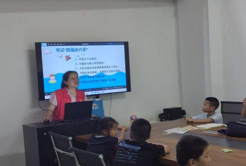 安全知识课堂聚焦儿童暑期安全防护。消防安全讲解中,志愿者们通过动画短片、情景模拟和互动问答等形式教导孩子们识别灭火器、消防栓等消防器材图片,判断电器过载、易燃物堆积等火灾隐患场景,深入学习火灾危害、日常防火要点和逃生自救技巧。在防溺水环节,志愿者们详细讲解了 “六不准” 原则,通过模拟溺水场景演示正确的自救与呼救方法。学习中孩子们高高举起小手积极抢答,稚嫩的声音里满是认真,将防溺水知识牢牢记在心里。