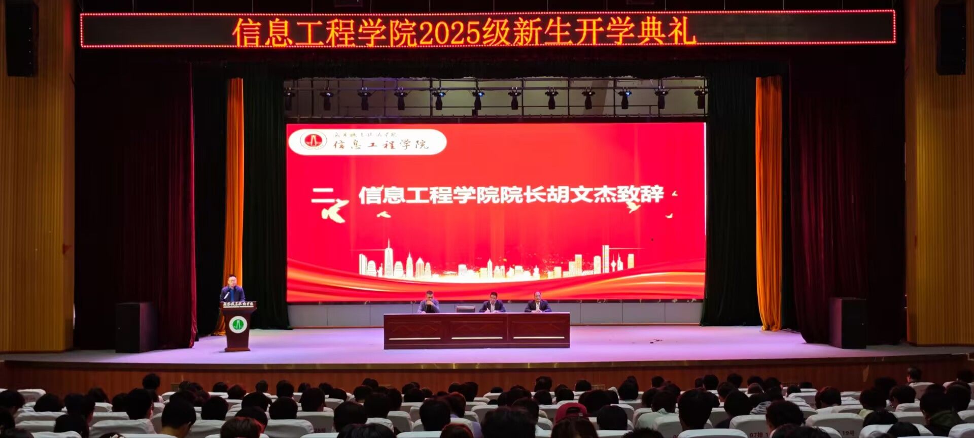 典礼在庄严的国歌声中拉开帷幕。院长胡文杰代表全院教职工向怀揣梦想、踏入校园的新生们致以最热烈的欢迎。“大学是人生的重要转折点,也是追逐理想的新起点。” 他鼓励同学们在大学期间,一要勤学深耕,锤炼专业本领;二要勇于创新,积极实践突破;三要心怀家国,担当复兴重任。