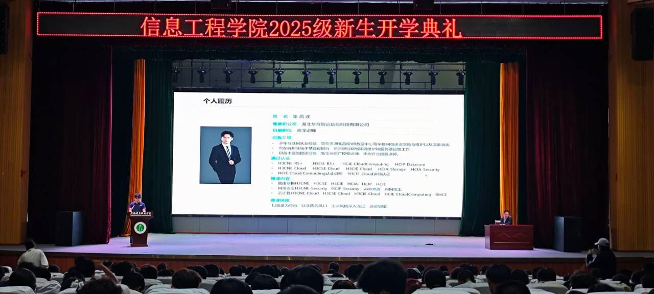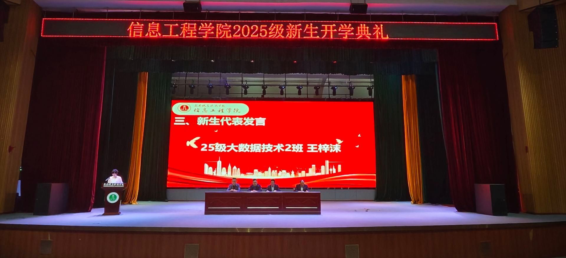 随后,新生代表25大数据02班王梓沫同学满怀期待发言,承诺以饱满热情投入学习,参与社团活动,探索知识边界,与同学共写 2025级学生的精彩篇章。优秀校友董昌逢的发言将现场氛围推向高潮。作为从母校走出又回到母校工作的优秀学生,他回顾了在校求学的难忘时光,分享了自己从校园走向职场的奋斗历程,强调了母校赋予的追梦精神,勉励学弟学妹善用资源、夯实基础,以坚韧毅力应对挑战。