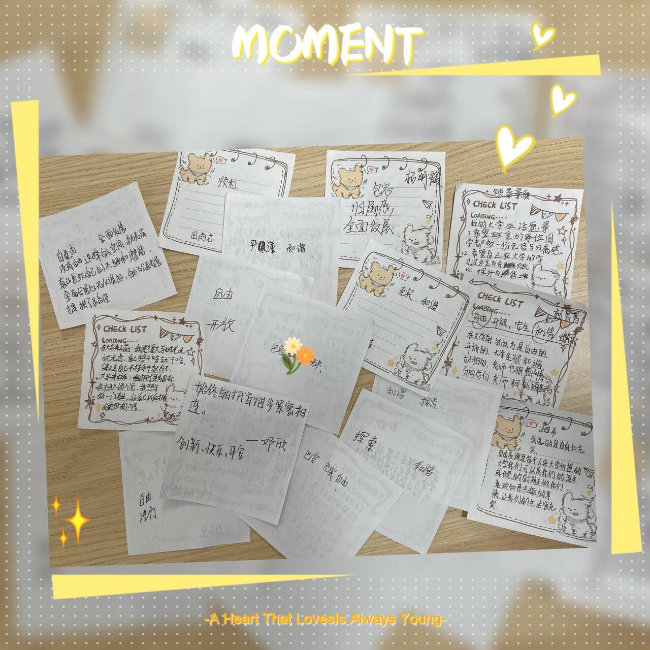 活动伊始,在辅导员引导下,同学们静心沉思,从“探索、卓越、创新、多元、专注、健康、自由、充实、担当、快乐”等众多词汇中,选取两至三个最能代表自己对未来大学期许的词语作为个人愿景。