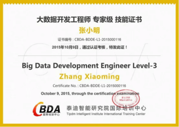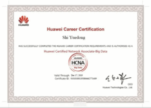 “1+X”大数据平台运维职业技能等级证书、HCNA华为网络工程师、大数据分析与应用职业技能等级标准证书、大数据开发工程师等。